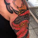 Tetování, zvířata, had, portrét, meče na rukávu