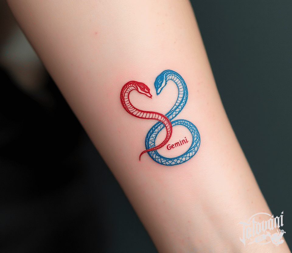 Tetování zvířata, hadi, blíženci znamení zvěrokruhu na předloktí