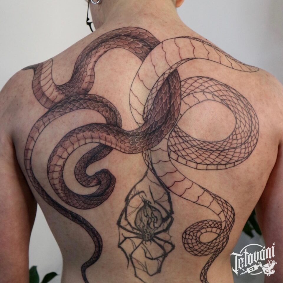 Tetování zvířata, hadi na zádech