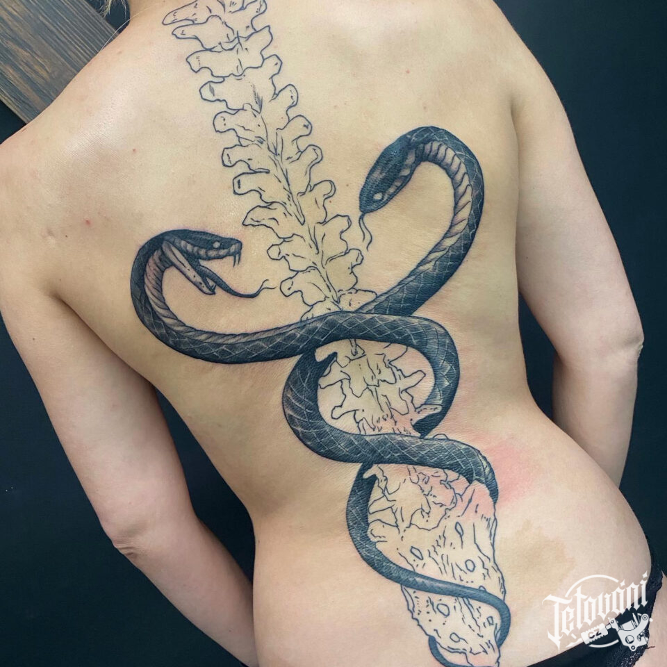 Tetování zvířata, hadi na zádech