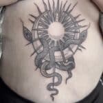 Tetování zvířata hadi, slunce, měsíc na břicho
