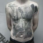 Tetování zvířata, jelen a medvěd, příroda, les na hrudník a břicho