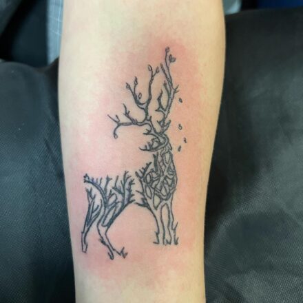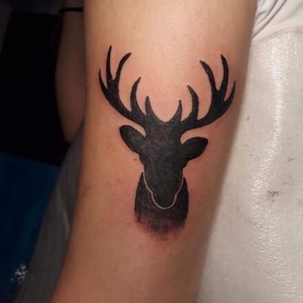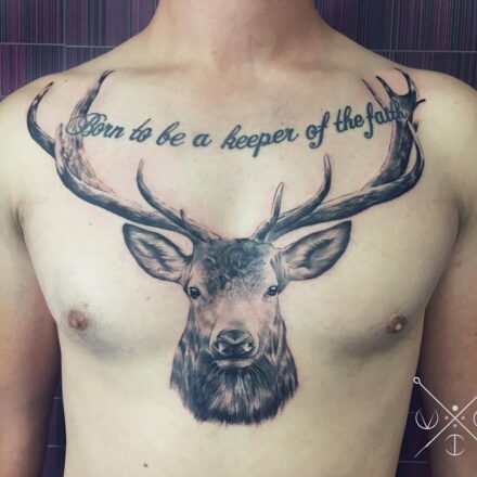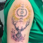 Tetování zvířata, jelen a měsíc a slunce na rameni