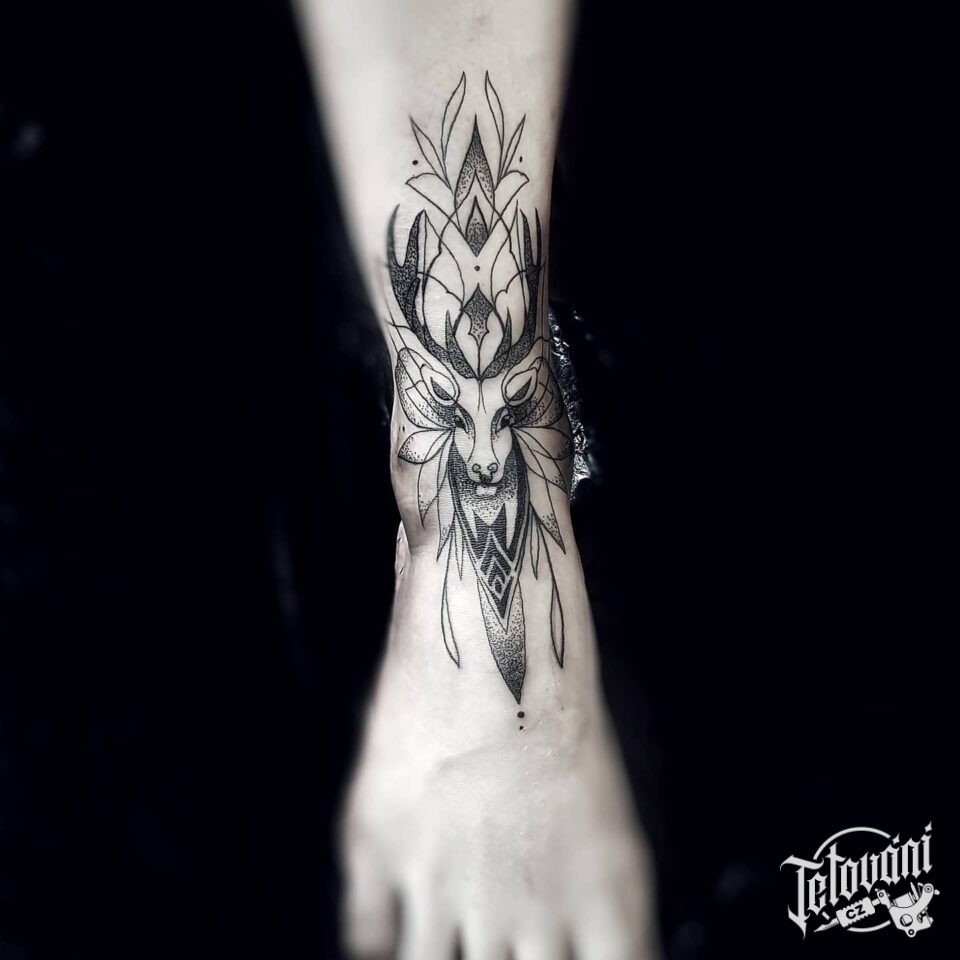 Tetování zvířata, jelen a ornamenty na holeni