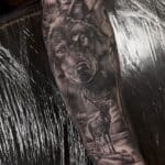 Tetování zvířata jelen a pes na předloktí
