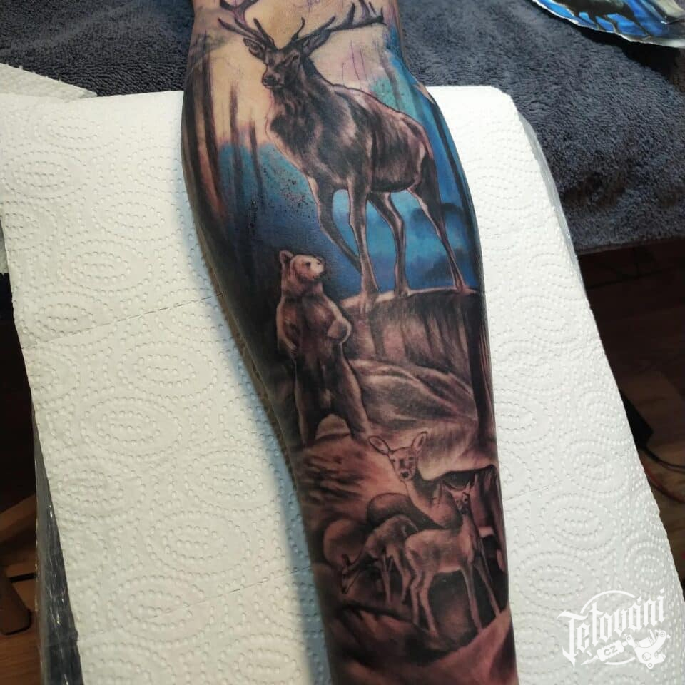 Tetování zvířata jelen, medvěd, laňky na předloktí