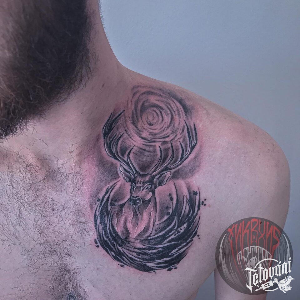 Tetování zvířata, jelen přes klíční kost