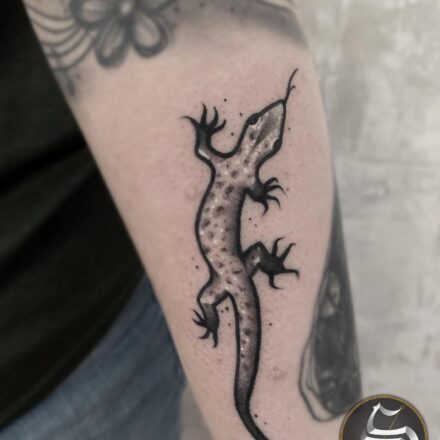 Tetování zvířata, ještěrka, motýl na předloktí