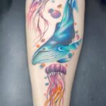 Tetování zvířata, keporkak a medúzy na lýtku