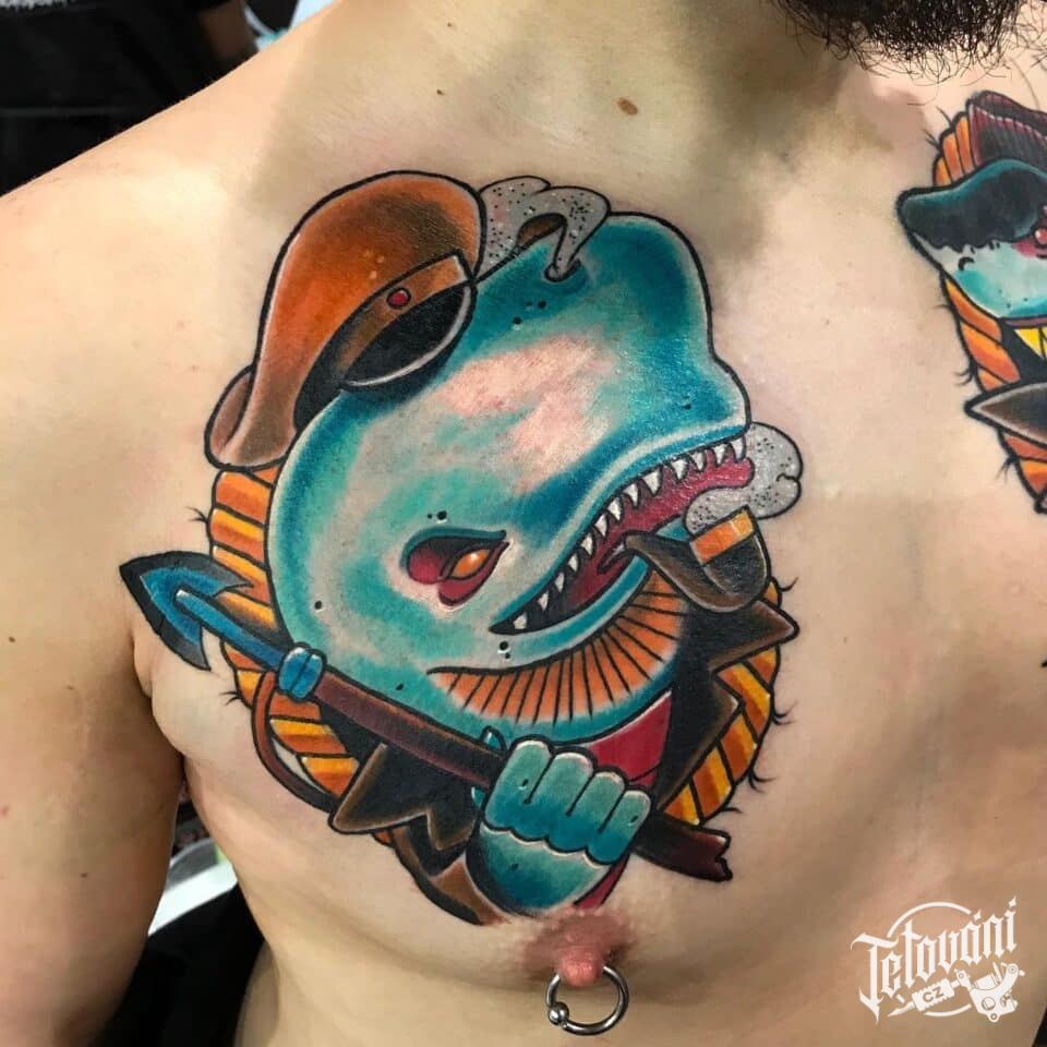 Tetování zvířata, keporkak na prsu