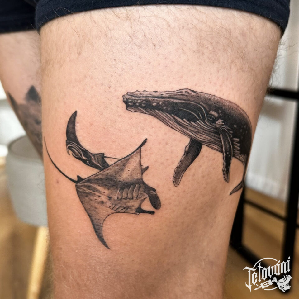 Tetování zvířata, keporkak na stehně