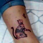 Tetování zvířata, kočka a květiny na lýtku