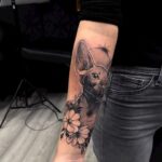 Tetování zvířata, kočka a květiny na předloktí