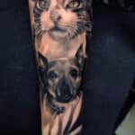 Tetování zvířata, kočka a pes na předloktí