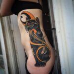 Tetování zvířata, kočka, měsíc na boku