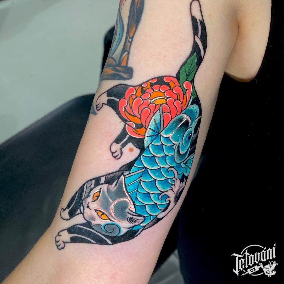 Tetování zvířata, kočka na paži