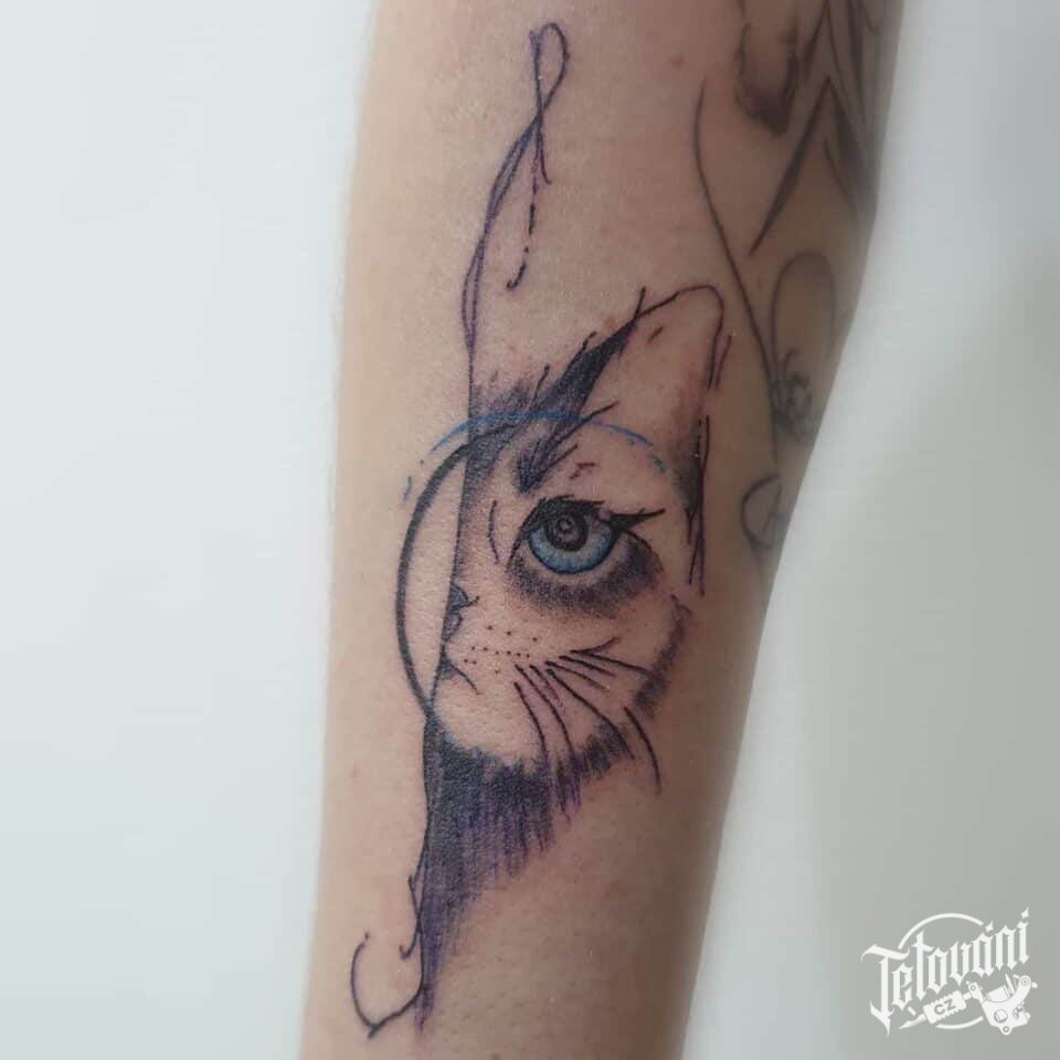 Tetování zvířata, kočka na předloktí