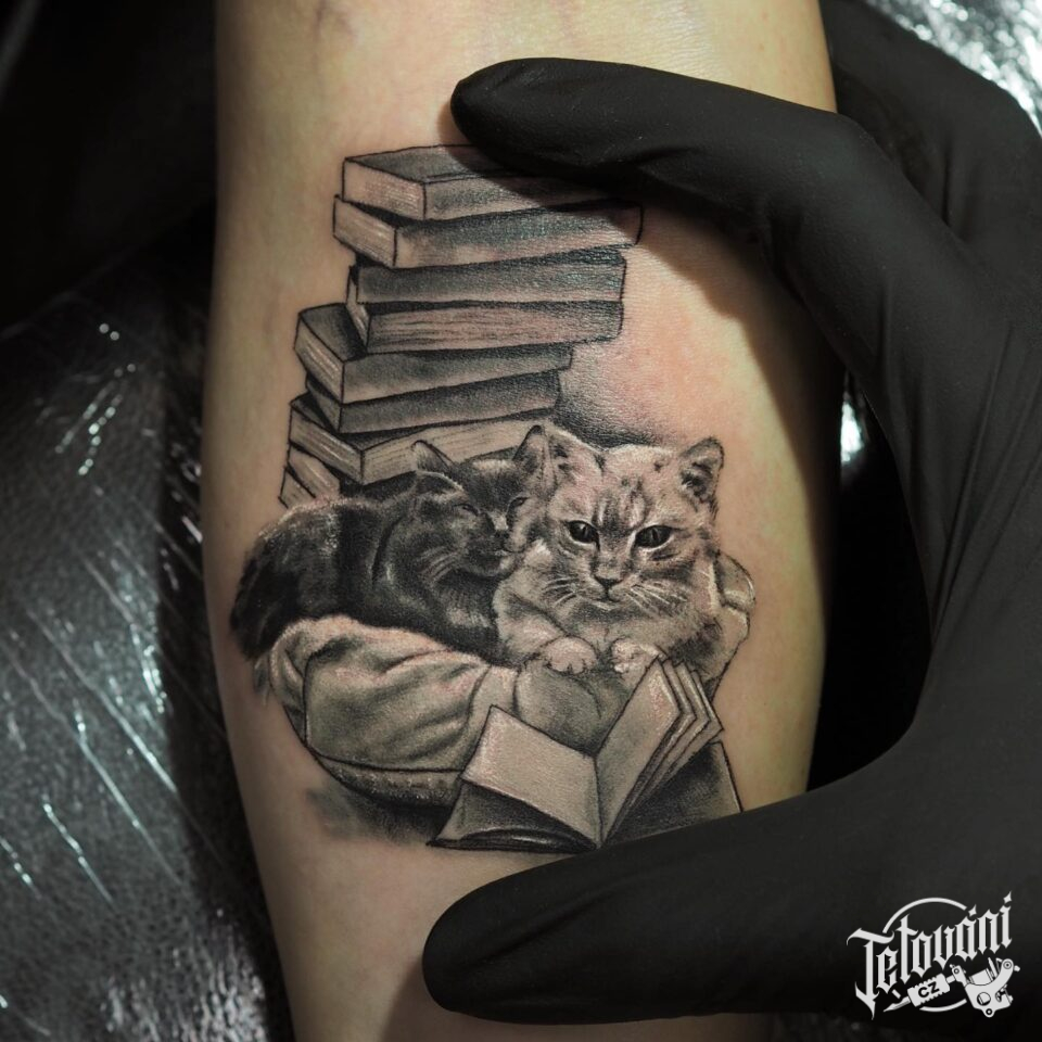 Tetování zvířata, kočky a znaky a symboly, knihy na předloktí