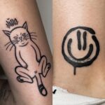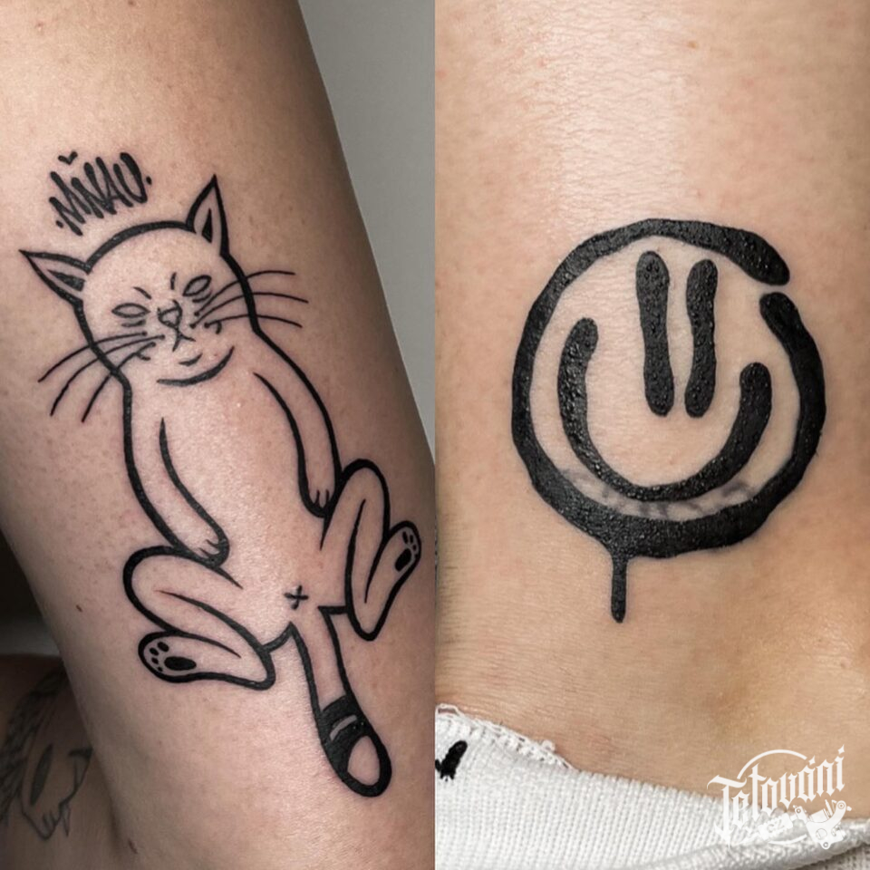 Tetování zvířata kočky, symboly smajlík na lýtko