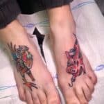 Tetování zvířata, kohout a prase na nártu