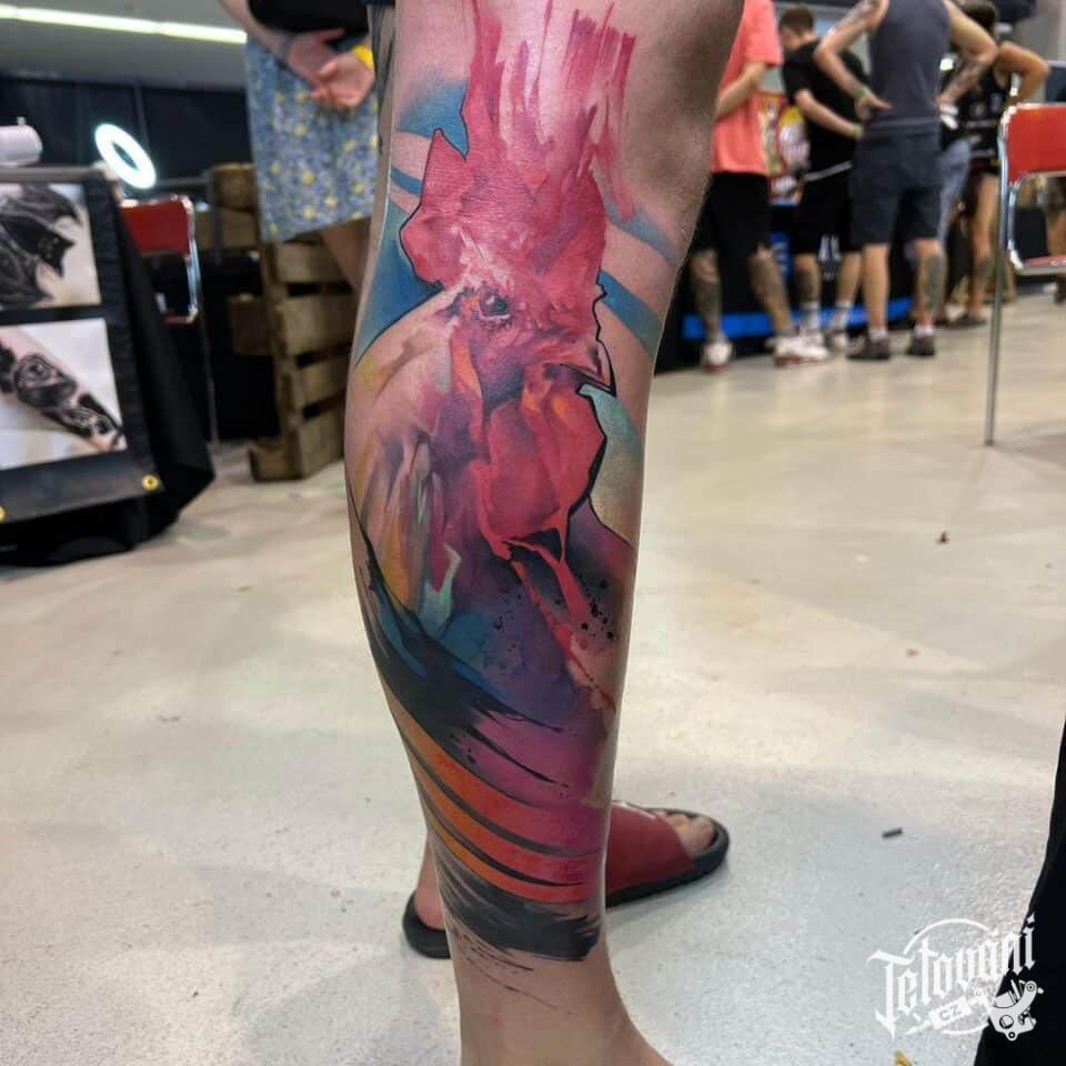 Tetování zvířata, kohout na lýtku