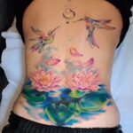 Tetování zvířata kolibříci a lotosové květy na záda