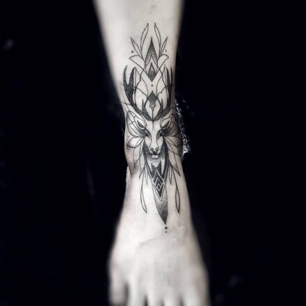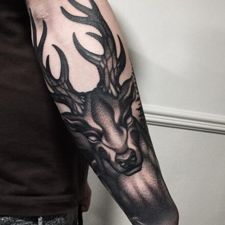 Tetování zvířata, kolibřík, jelen, vážka, motýl a květiny na rukávu