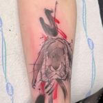 Tetování zvířata, králík a abstraktní čáry a pruhy na předloktí