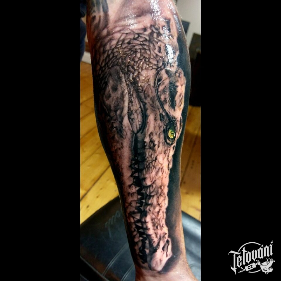 Tetování zvířata, krokodýl na předloktí