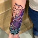 Tetování zvířata, krysa, znaky a symboly, květiny na předloktí