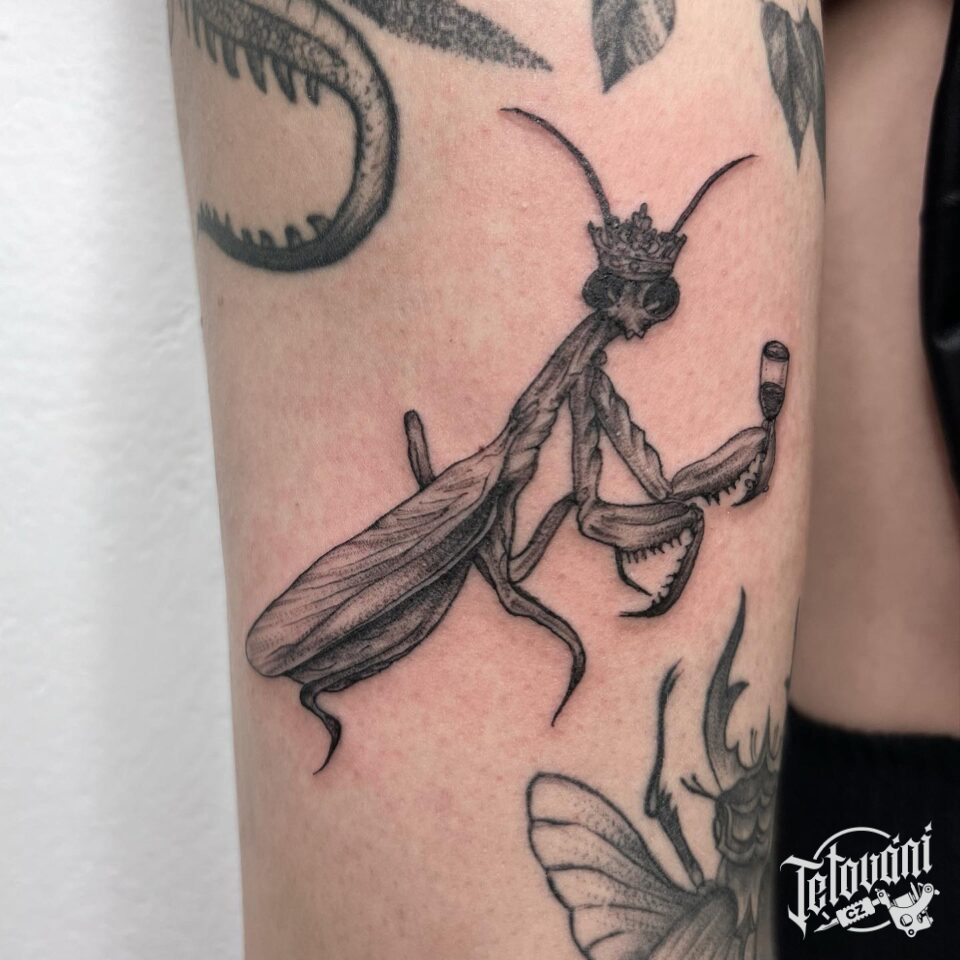 Tetování zvířata kudlanka, symboly na rameno
