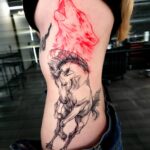 Tetování zvířata, kůň a vlk na žebrech