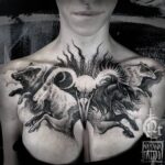 Tetování zvířata kůň, kozoroh na hrudník