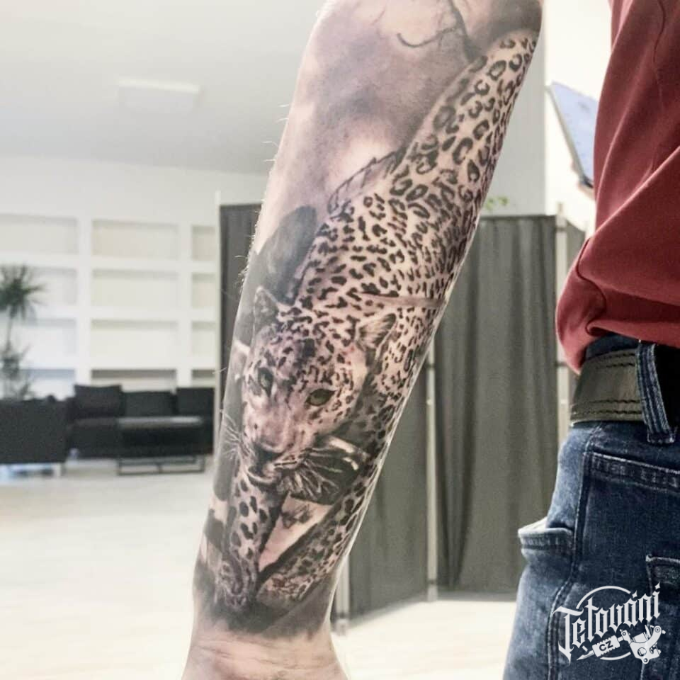 Tetování zvířata, leopard na předloktí