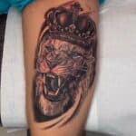 Tetování zvířata, lev a koruna na stehnu