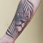 Tetování zvířata, lev a lev znamení zvěrokruhu, květiny na předloktí