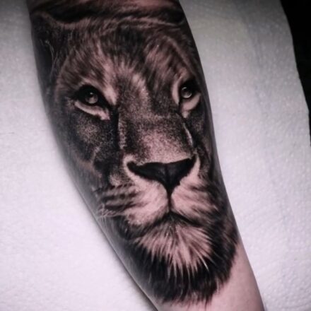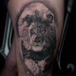 Tetování zvířata, lev a lev znamení zvěrokruhu na boku stehna