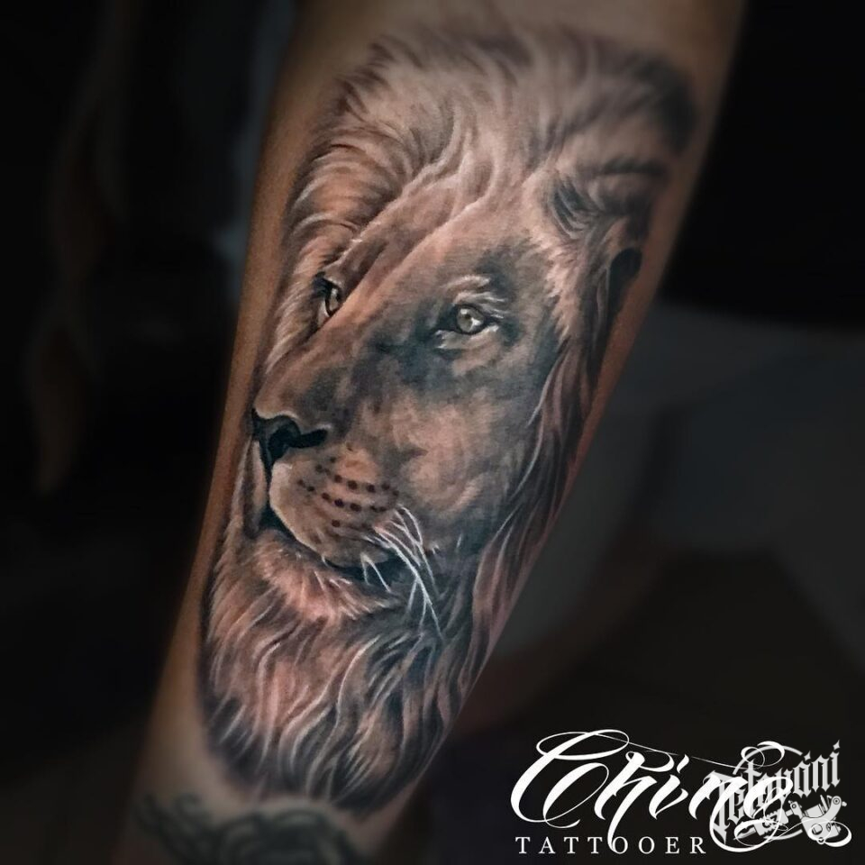 Tetování zvířata, lev a lev znamení zvěrokruhu na předloktí