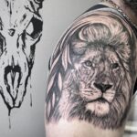 Tetování zvířata, lev a lev znamení zvěrokruhu na rameni