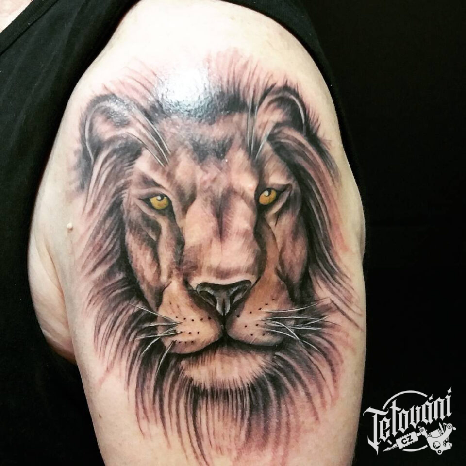 Tetování zvířata, lev a lev znamení zvěrokruhu na rameno