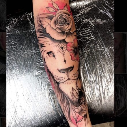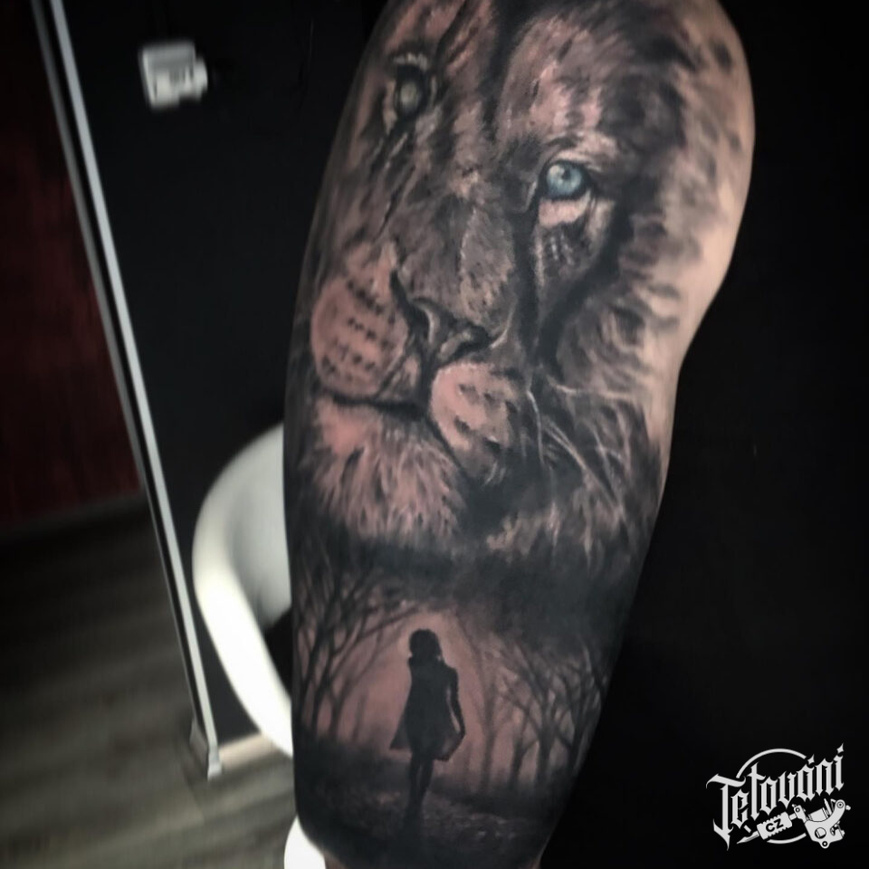 Tetování zvířata, lev a lev znamení zvěrokruhu na rameno