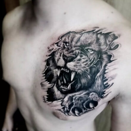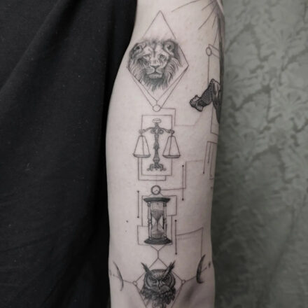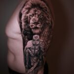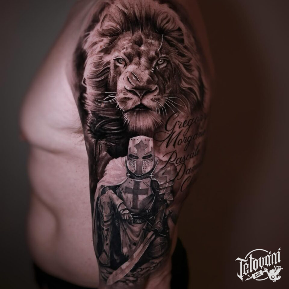 Tetování zvířata, lev a lev znamení zvěrokruhu, templář na rameno