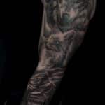 Tetování zvířata lev a liška, příroda hory a les na ruku