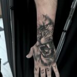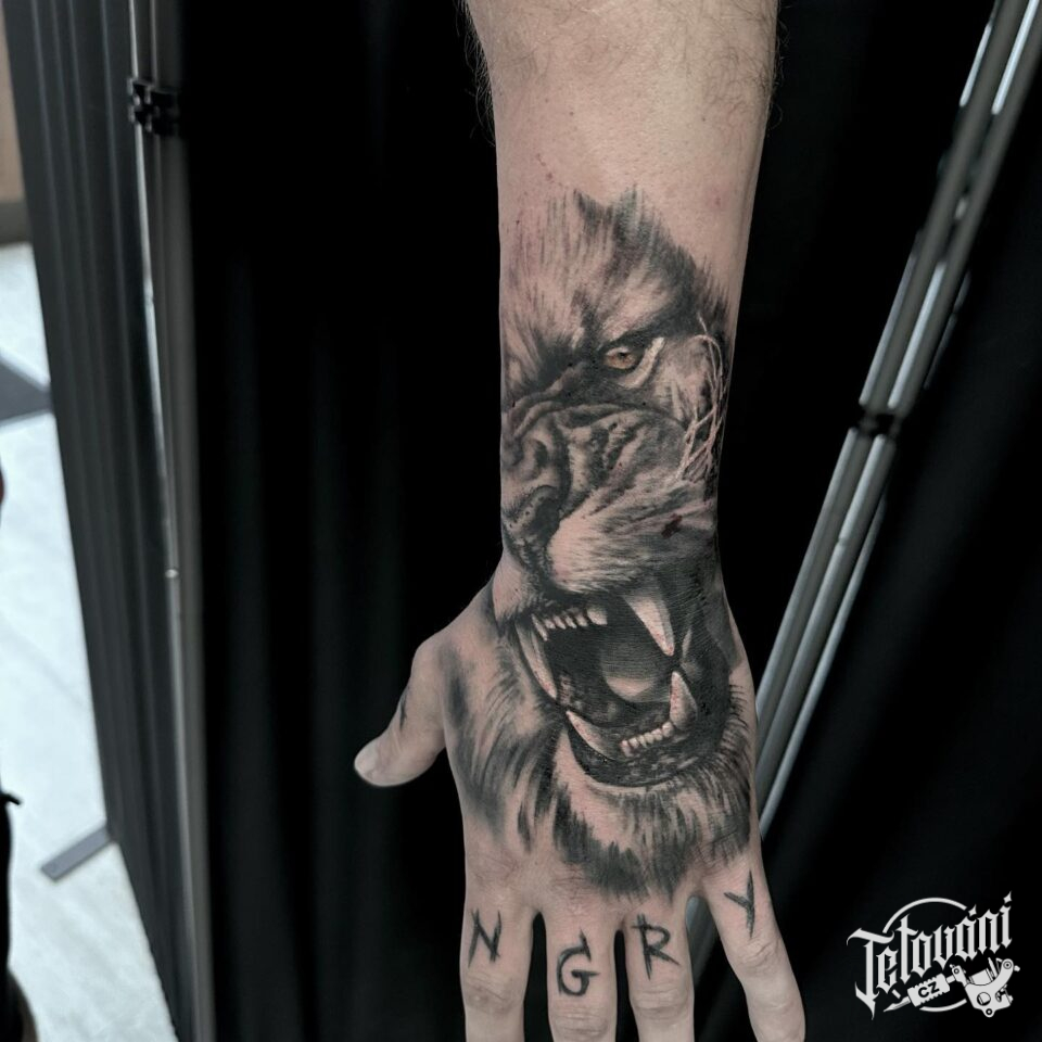 Tetování zvířata, lev a znamení zvěrokruhu lev na hřbetu ruky