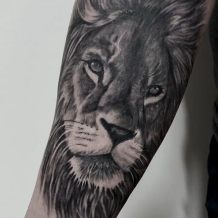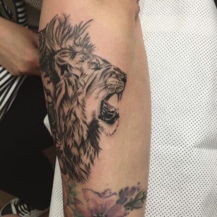Tetování zvíře, lev znamení zvěrokruhu, kříže na rameni