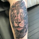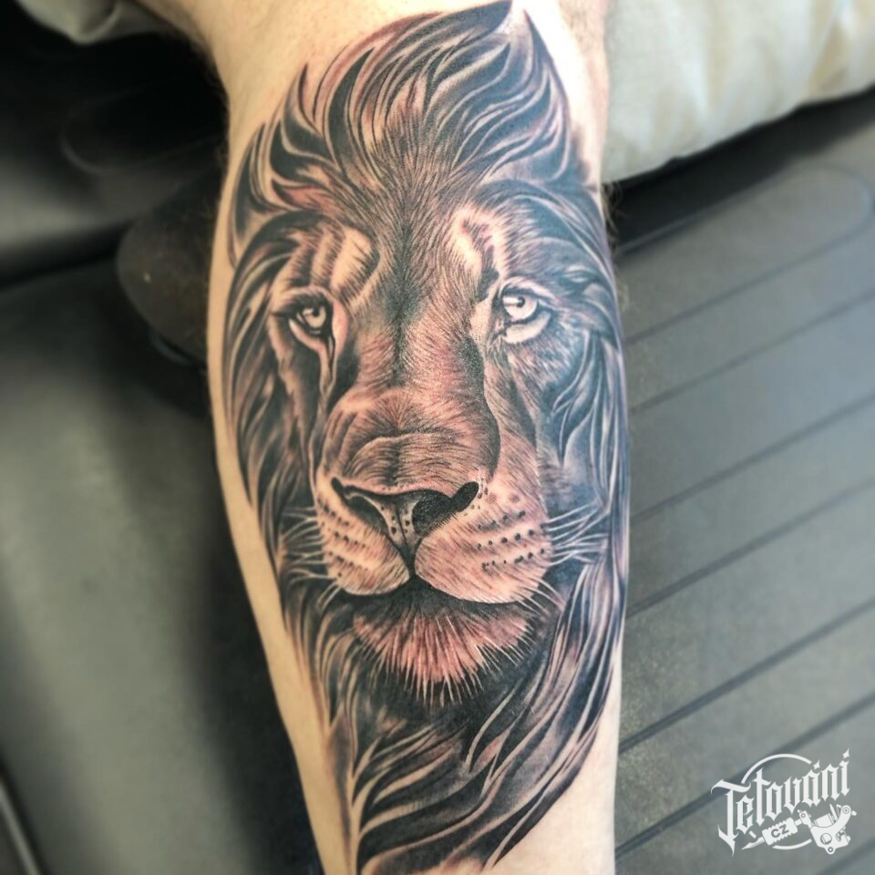 Tetování zvířata, lev na lýtku