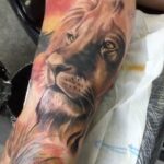 Tetování zvířata, lev na paži