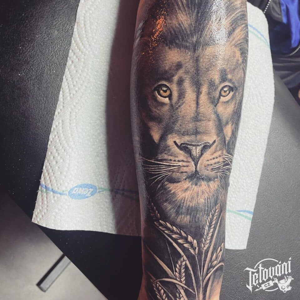 Tetování zvířata, lev na předloktí