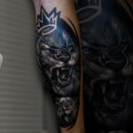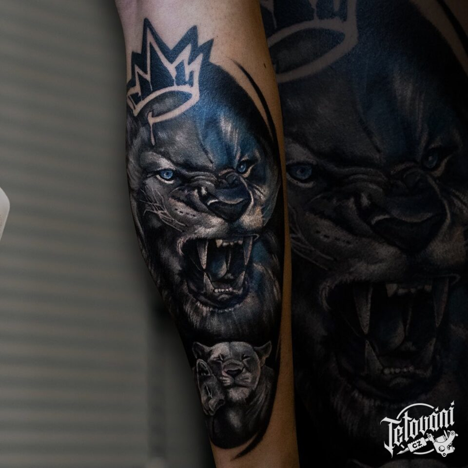 Tetování zvířata, lev, rodina, koruna na předloktí