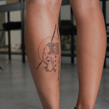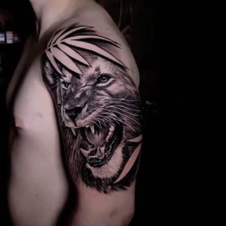 Tetování zvířata, lev, tvar, ruce a ornamenty